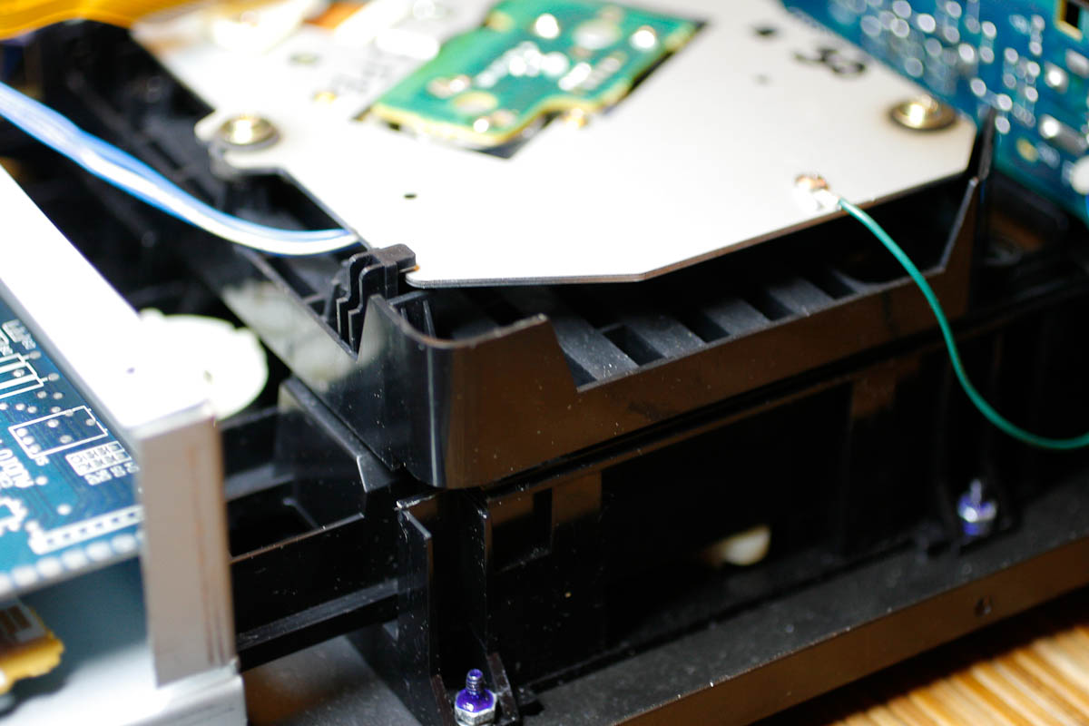 The bottom side of the mechanism drawer with stable platter supporting